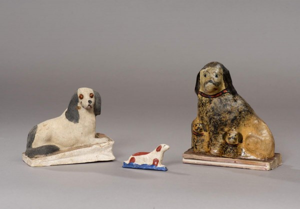 В ХIХ веке распространилась техника папье-маше. На резную деревянную заготовку — «болвашку», основу формы игрушки, наносили сырую бумажную массу с клеем, затем разрезали получившуюся твердую оболочку, склеивали половинки и раскрашивали, нередко добавляя обсыпку, создающую искрящуюся поверхность. Так возникли разнообразные сергиевские пудели, спаниели, собаки других пород. Появились игрушки-«пищалки», издающие звук при нажатии на подставку, что придавало эффект забавного «живства». Ирина Колобкова, Мария Плотникова. Народная игрушка // Жизнь замечательных собак. СПб. 2025. С. 219