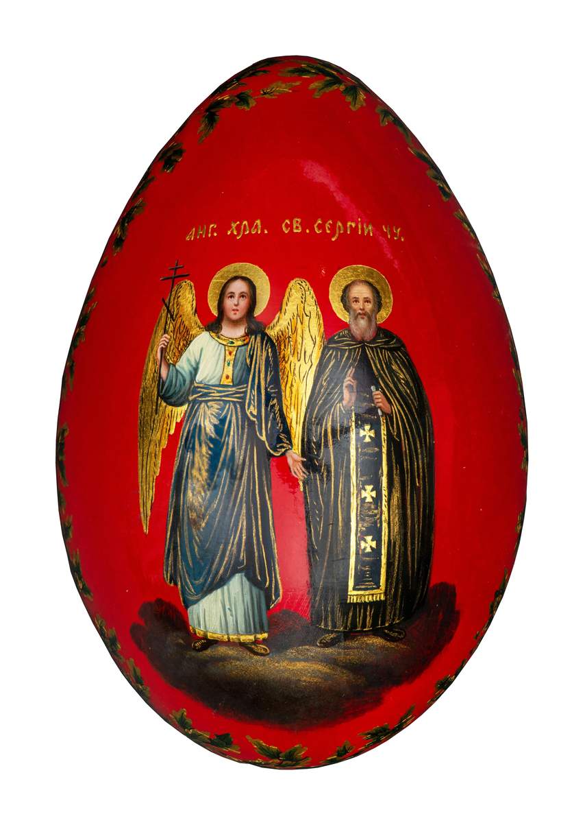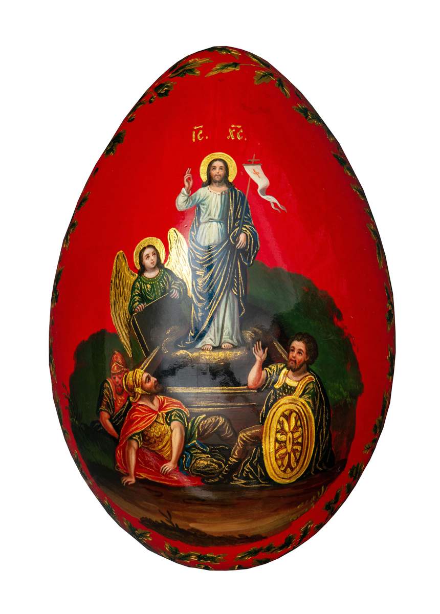 - Папье-маше, сусальное золото, масло, лак, миниатюрная живопись. В. — 10; дм — 6,5