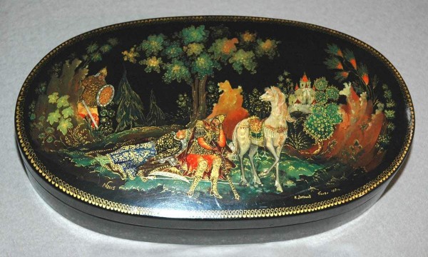Главная Онлайн ресурсыКоллекцияНародное искусство Баул «Руслан и Людмила» Баул «Руслан и Людмила» Автор: И. И. Загонов. 1950-е ОНИ/Р-4580 Период Вторая половина XX – XXI вв. Типология / подвидМиниатюрная и декоративная живопись | Лаковая миниатюра КатегорияМифологические и сказочные сюжеты Ключевые слова Советское искусство | литературные герои | Пушкин и его герои | мифологические и сказочные персонажи | лошади Участие в виртуальных выставках и 3D-турах «Он победил и время и пространство…» К 225-летию со дня рождения А. С. Пушкина Поделиться «Виртуальный Русский музей» в социальных сетях: