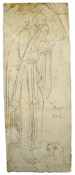 В правом нижнем углу поздний набросок карандашом лика Богоматери.