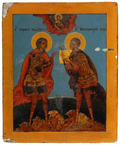 Икона двусторонняя «Димитрий и Георгий и Собор Архангела Михаила»