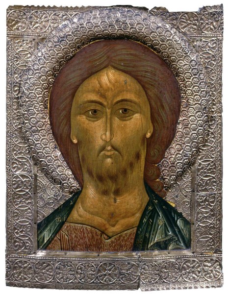 Икона была прислана в Троицкий Александро-Свирский монастырь по приказу царя Ивана Грозного „по душе“ царевича Ивана Ивановича, после смерти наследника в 1581 году. Об этом сообщает надпись на тыльной стороне иконы. Образ Христа – грозного Судии – связывался с ожиданием грядущего Страшного суда и молением о прощении. Оглавные изображения Христа на иконах „пядничного“ размера получают распространение в русской иконописи с середины XVI века и воспроизводят чтимые иконы из главных соборов Московского Кремля. Икона из Свирского монастыря отличается тонкостью письма и украшающего ее серебряного басменного оклада, покрытого затейливыми цветочными и геометрическими орнаментами. Ирина Соловьева // Иисус Христос. СПб, 2000. С. 403.