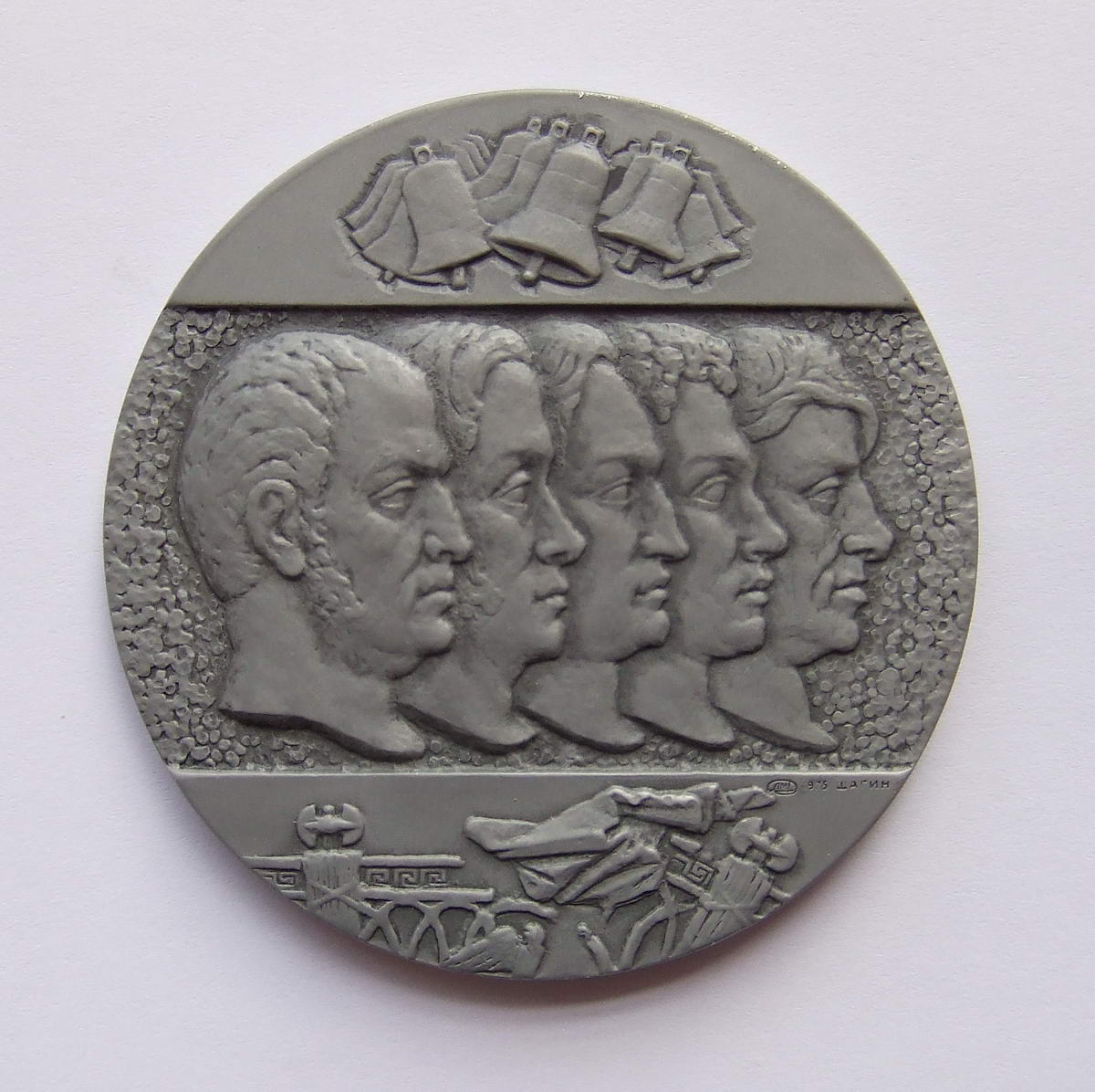 За основу композиции медали, выпущенной на Ленинградском монетном дворе к 150-летию восстания декабристов, Александр Шагин взял гравюру английского художника Уильяма Линтона (1818, Лондон — 1897, Хамден, США), ставшую самым известным изображением казненных декабристов. Линтон познакомился с А.И.Герценом в Лондоне, где русский публицист скрывался от царского правительства. Герцен много рассказывал Линтону о декабристском движении. Узнав об издании альманаха "Полярная звезда", Линтон согласился сделать для него обложку. В 1855 году он сделал групповой портрет декабристов, на котором поместил изображенные в виде барельефа профили и имена П.И.Пестеля, К.Ф.Рылеева, М.П.Бестужева-Рюмина, С.И.Муравьева-Апостола и П.Г.Каховского. Подробнее >>>