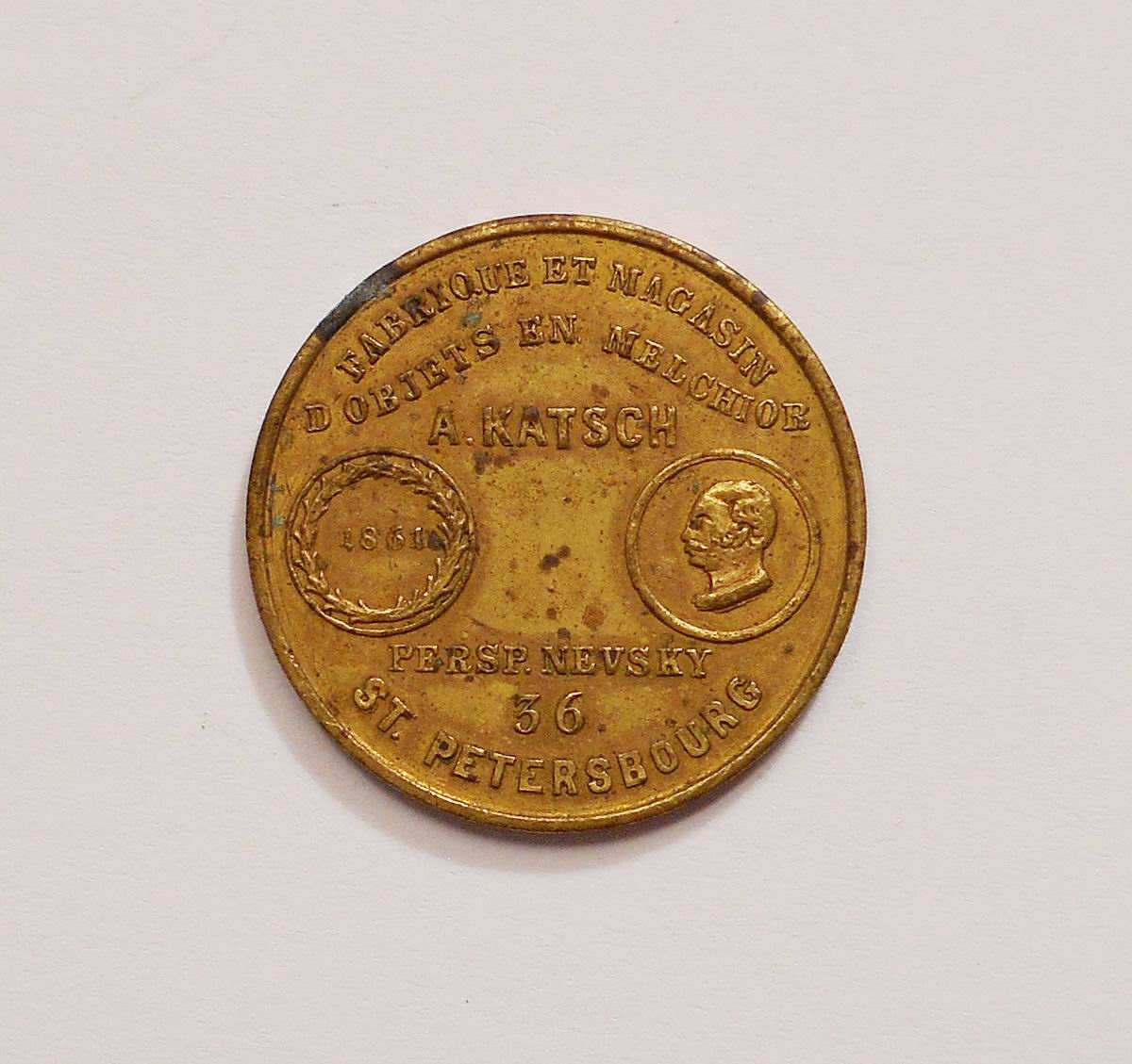 Жетон магазина А. Кач в С.П.Б.