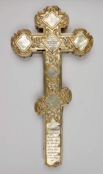 Home page Online resourcesCollectionsOld Russian Decorative and Applied Art Крест напрестольный Крест напрестольный 1689 Wood, silver, chasing, engraving, gilding. 33,5 × 17,2 БК-2883 Пост. в 1912 из Благовещенского монастыря в Муроме Period 17th century Keywords The Ancient Repository Share «Виртуальный Русский музей» в социальных сетях: