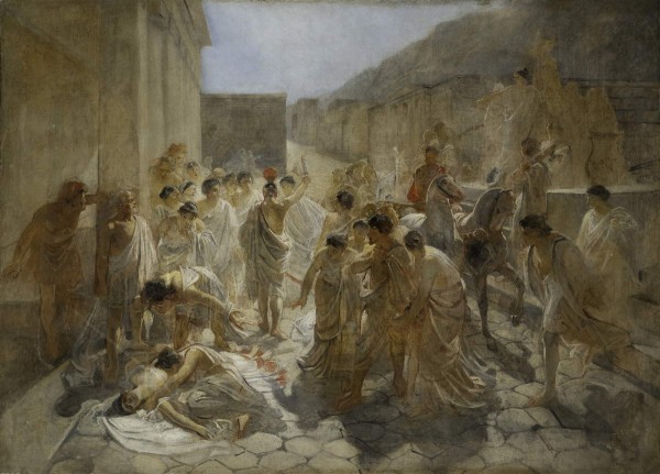 «Форум, Капитолий, Палатинская гора, Колизей, дворцы цезарей, Пантеон — все это я вижу в действительности. Весь древний и средневековый Рим, чтение его истории на месте происшествий придавали особый живой характер моему чтению. Во мне воскресла жизнь древних в ее настоящем живом размере и смысле, и вот, может быть, начало! того, что называется чувством „реального в искусстве“!.. Первая мысль, которая мне показалась своей, была „Смерть Виргинии“. Отец убивает дочь любимую, чтобы спасти ее чистоту. Злодей Аппий, децемвир, ложно доказал ее рабство, и отцу ничего не осталось, как убить ее или отдать в рабство и разврат. Целые кучи я написал эскизов, один и теперь висит у меня на стене. Но, дойдя до конца, я увидел, что и отца римлянина я не знаю, и Аппия я не знаю, следовательно, это не живая мысль, а фраза. Я и бросил этот сюжет…». Николай Николаевич Ге. Письма, статьи, критика, воспоминания современников. М., «Искусство», 1978. С. 43.