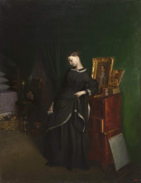 Повторение одноименной картины (с зеленой комнатой), находящейся в ГТГ. Лицо и руки написаны П. А. Федотовым, остальное — неизвестным художником. Павел Федотов. СПб, 2015. С. 68.