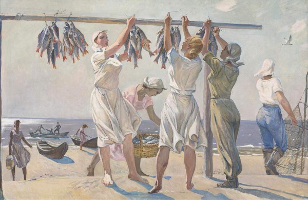 Home page Online resourcesCollectionsWorks of Painting У моря Deineka A. A. 1899, Kursk - 1969, Moscow У моря 1957 oil on canvas. 130 х 200 Ж-7774 Period Late 20th century – 21st century CategoryGenre Painting Keywords 1945–1991 | headdress | female costume | boat, sailing ships, ships | Birds | Fish Virtual exhibitions and 3d-tours Александр Дейнека. Певец новой жизни. К 125-летию художника Share «Виртуальный Русский музей» в социальных сетях: