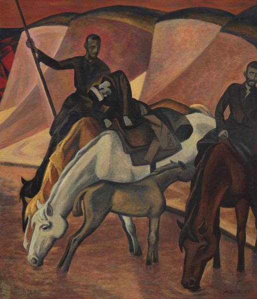 Как символическое осмысление борьбы советского народа воспринимаются героико-драматические образы из цикла «История Красной державы», написанного в 2000-х годах. В оценке сложных драматических поворотов истории Оссовский оставался верен идеалам своего военного детства, тревожной молодости и заветам учителей. Ольга Мусакова. Аннотация к выставке «Петр Оссовский. К 100-летию со дня рождения». 2025.