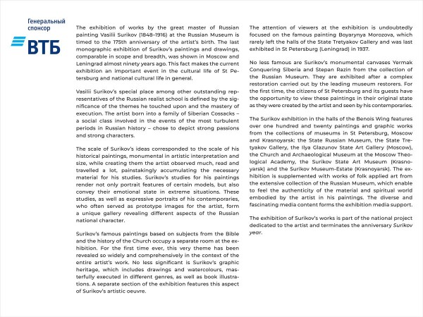 About exhibition (О выставке В.И.Сурикова (англ.))