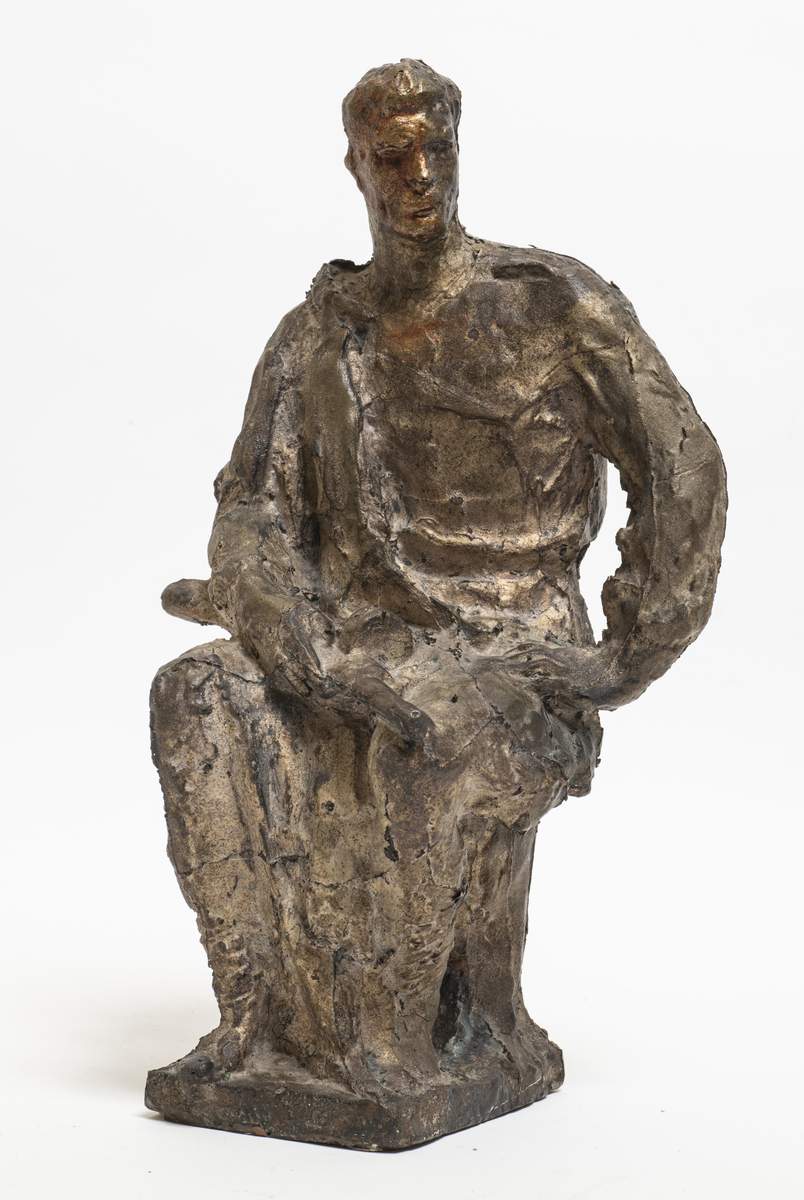 Война прервала учебу Аникушина на последнем курсе института. Вместе с другими студентами и преподавателями Академии художеств он участвовал в оборонительных работах на Карельском перешейке, а в ноябре 1941 года вступил в ряды Красной армии. В 1946 году по возвращении в Ленинград, будучи под впечатлениями от фронтовых будней, Аникушин создал три эскиза фигур бойцов. Лучший из них — однофигурная композиция, изображающая сидящего солдата с автоматом, — стал дипломной работой «Воин-победитель», которую 22 июня 1947 года он представил государственно-экзаменационной комиссии. Вот как скульптор рассказал о своем творческом замысле: «Тема у меня сложилась во время войны, в которой я участвовал. У меня осталось какое-то чувство, что свои переживания, участие в событиях, которые происходили в нашей стране, должны найти отражение в творчестве. В замкнутой скульптурной композиция мне хотелось передать юношескую твердость характера бойца». Страна побед // С. 167.