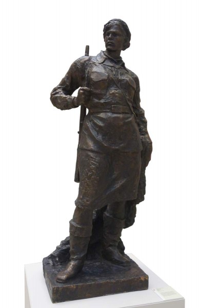 В дни блокады Ленинграда Вера Исаева много и плодотворно работала, создавала обобщенные образы красноармейцев, партизан, девушек-бойцов противовоздушной обороны, воплощая их не только в станковых работах, но и монументальных скульптурах. В тяжелейшие блокадные месяцы, в погибающем от голода, бомбардировок и артобстрелов Ленинграде на Невском проспекте стояли гипсовые статуи «Партизан» и «Партизанка» (1942) как знак мужества, стойкости и правоты человека, вставшего на защиту родной земли. Сами гипсовые фигуры не сохранились, но эскизы и бронзовые отливы «Партизанки» дошли до настоящего времени. Страна побед. СПб, 2025. С. 122.