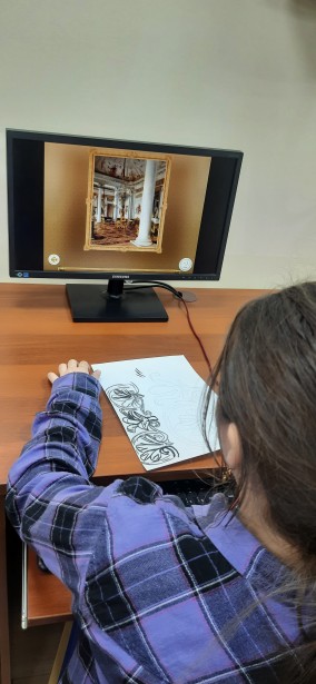 Под руководством педагога Ирины Борисовны Ивашко, учащиеся попробовали себя и в роли художников-копиистов, срисовывая понравившиеся элементы декора дворцов.