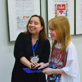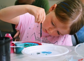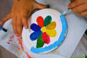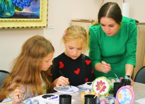 Особый восторг у юных посетителей праздничной программы вызвала творческая мастерская, где ребята сами создают подарок: украшают декоративные тарелки цветочным символом предстоящего праздника - ромашкой.