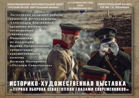 25 сентября в ИОЦ "Русский музей: виртуальный филиал" в Севастопольском филиале РЭУ им. В.Г.Плеханова состоится открытие историко-художественной выставки "Первая оборона Севастополя глазами современников", приуроченной к 170-летию начала первой обороны Севастополя.