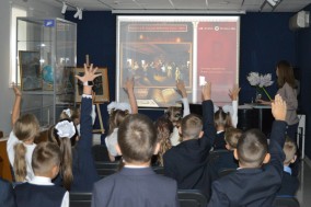 В завершении лекции дети проверили свою внимательность в игре «Ровесники», разработанной сотрудниками Русского музея. В «Школьной комнате» игроков ждали уже знакомые картины и задания: отгадать загадку и найти предмет на картине по описанию и очертаниям.