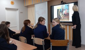 28 ноября 2024 года в Лодейнопольском центре внешкольной работы "Дар" в рамках проекта «Русский музей: виртуальный филиал» для учеников 7 Б класса МКОУ «СОШ № 3 им. Героев Свири» состоялось занятие из цикла «История одной картины» по теме «Ф.П. Решетников «Опять двойка».