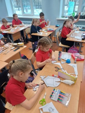 В конце мероприятия первоклассники приняли участие в творческой мастерской: вырезали, раскрасили и собрали замечательные кормушки с птичками.