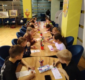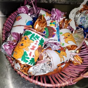 Яркими цветами, старательно и очень аккуратно, ребята раскрасили свои сказочные сюжеты для подарков-конфет.