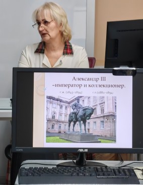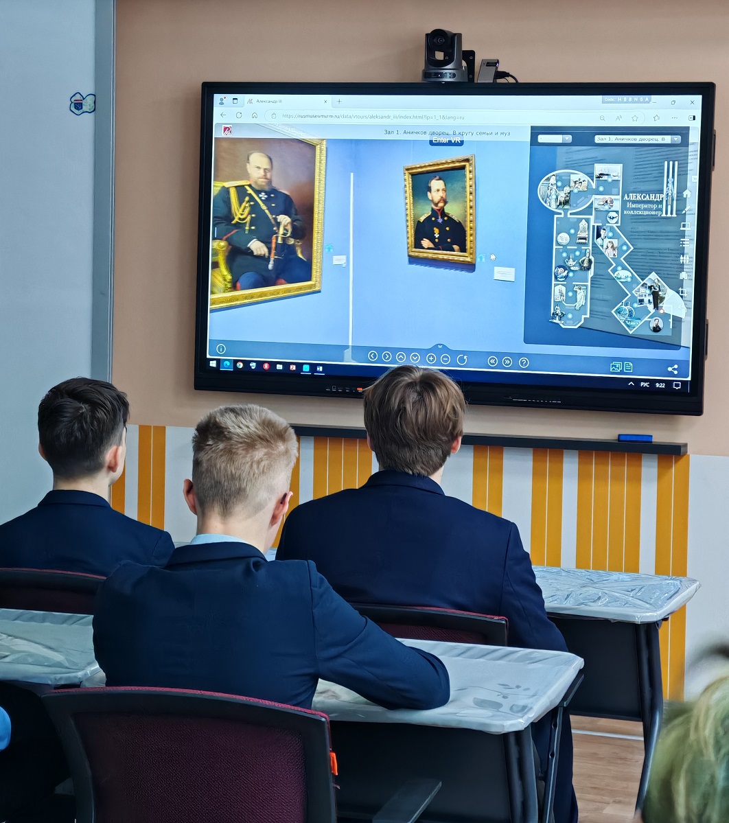 Познакомиться с императором Александром III как с личностью, увлечённой творчеством и коллекционированием, участникам занятия помог виртуальный тур «Александр III – император и коллекционер», созданный на основе временной выставки, проходившей в Русском музее в 2020 году. Благодаря туру участники смогли совершить виртуальное путешествие по залам выставки, детально рассмотреть экспонаты, а также прослушать аудиогиды, посвящённые наиболее значимым произведениям живописи и декоративно-прикладного искусства.