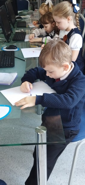 На очередном занятии в виртуальном филиале первоклассники познакомились с художником Венециановым А.Г. Ребята узнали много новых слов, познакомились с неизвестными предметами крестьянского быта, а самое главное, узнали, какой долгий и трудный путь проходит хлеб, прежде, чем попасть к нам на стол в виде вкусных булочек или батонов.  А потом ребята с удовольствием рисовали домового, непременного жителя  крестьянского дома, у  кто-то домовой получился в виде домашнего животного, а у кто-то в виде  уникального, невиданного существа.