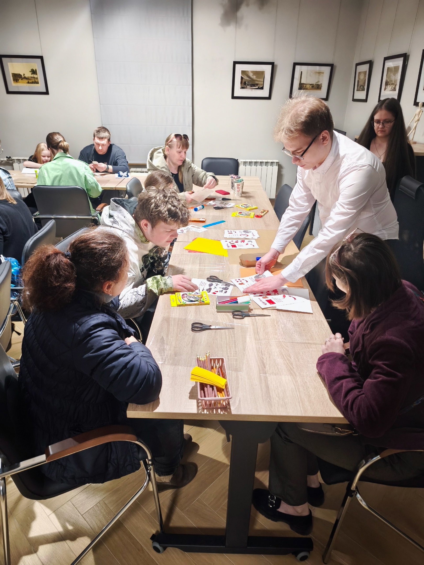 Более ста гостей посетили Виртуальный филиал Русского музея в Рыбинском музее-заповеднике 17 мая. Программа мероприятий включала интерактивные экскурсии на выставке "Мы Победу приближали, как могли", премьерный показ фильма "Николай Соколов. Штрихи Нюрнберга" в рамках проекта ИЗОмарафон "Художник и война", а также мастер-класс по изготовлению открытки в стиле коллаж по мотивам плакатов военного времени авторства Кукрыниксов.