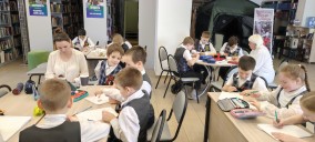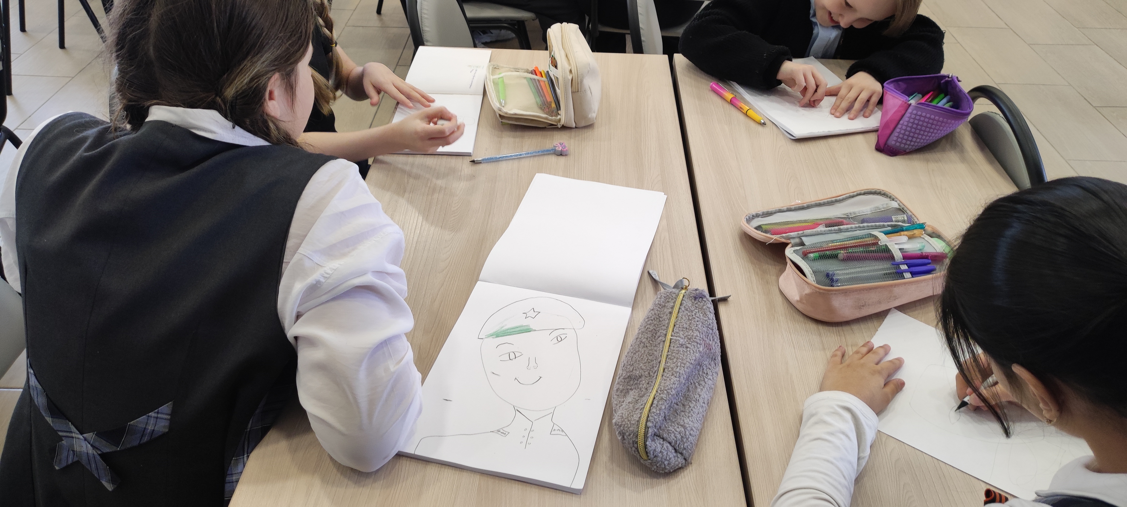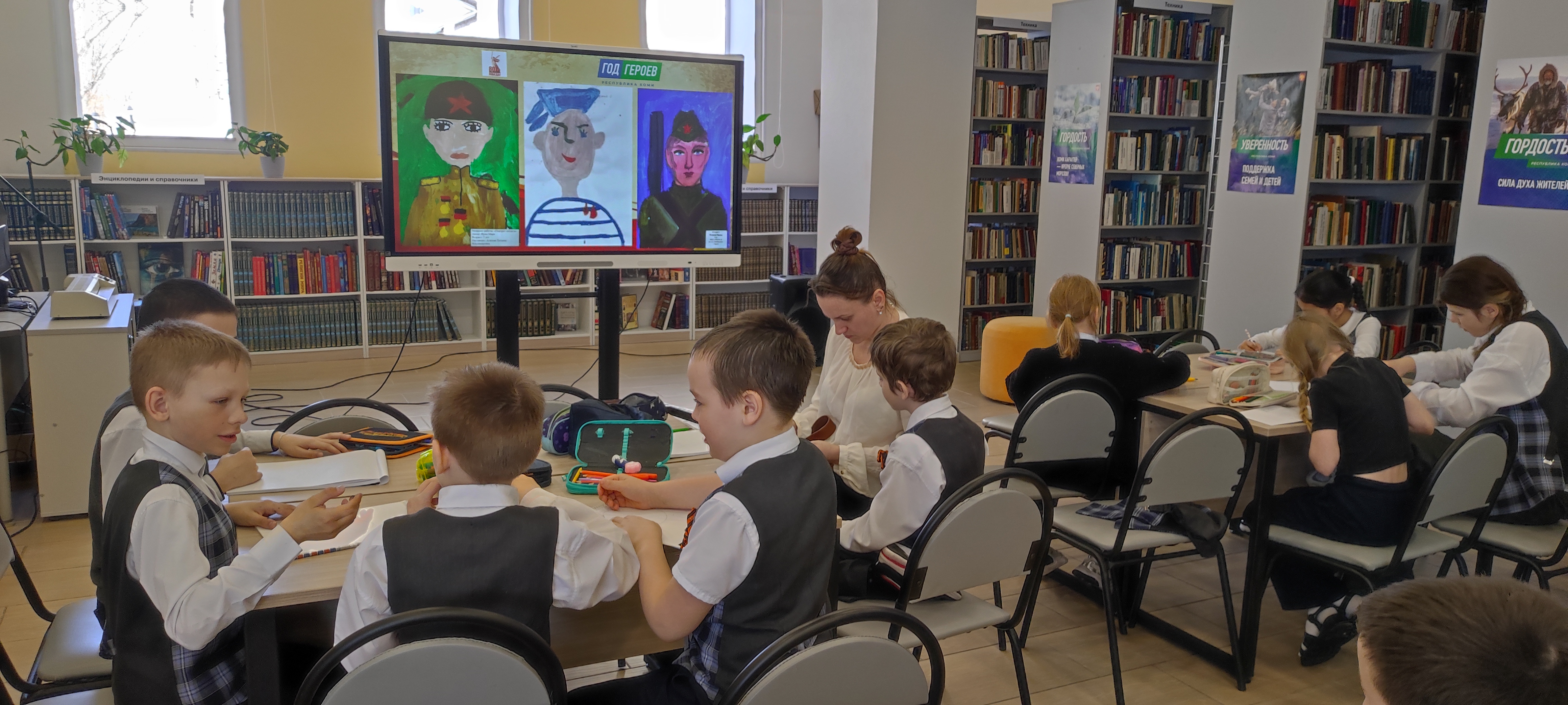 В преддверии празднования 80-летия Великой Победы 5 мая сотрудник Центральной городской библиотеки им. А.С. Пушкина провел урок в мастерской художника «Портрет солдата» с учащимися 3 класса МОУ "СОШ № 35 с УИОП". В начале мероприятия ребята прослушали некоторые факты о великом празднике. Затем посмотрели видеофильм «Портрет» из программы «Русский музей: виртуальный филиал», где интересно и познавательно художник вместе с Фафалей учили, как правильно рисовать портрет. После просмотра детям было предложено нарисовать портрет солдата. Рисуя портреты солдат Победы, дети погружались в историю, изучая примеры мужества и самопожертвования. Процесс рисования вызывал у них множество чувств: гордость за героев, печаль от утрат и благодарность. Ребята старались передать не только внешность солдат, но и их внутренний мир, эмоции, которые они испытывали в те тяжелые времена. Такой творческий процесс воспитывает в детях патриотизм, глубокое уважение к исторической памяти. Портреты получились яркими и трогательными, демонстрируя самые разные грани военной службы. В конце мероприятия «художники» сфотографировались со своими рисунками.