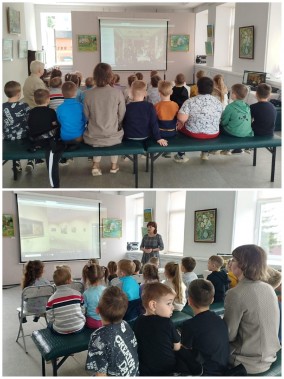 В Ржевском МВЦ старшие дошкольники детского сада № 4 совершили короткий виртуальный тур (использовался онлайн-ресурс Виртуального Русского музея) по залам выставки "Дом и семья. Картины мирной жизни".