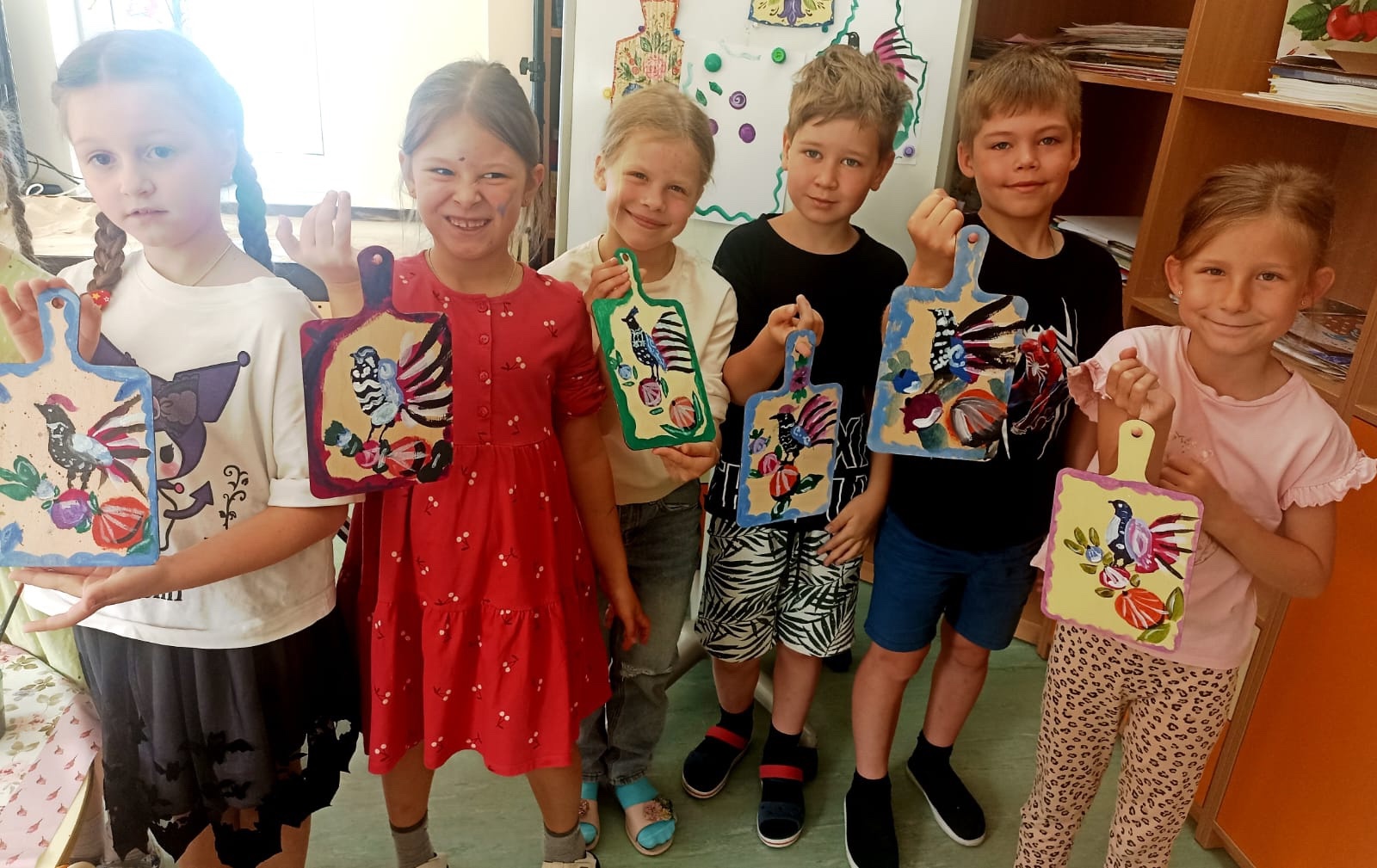 На занятии воспитанники старшей и подготовительной групп "Золотой рыбки" погрузились в мир Городецкой росписи – традиционного русского промысла. Юные художники с увлечением расписывали досочки яркими городецкими цветами и сказочными птицами. Все остались довольны своими красочными работами!