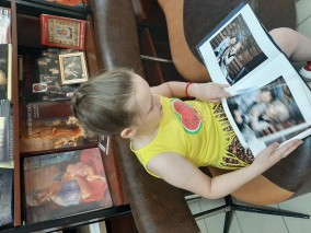 Во время занятия взрослые рассказали детям, почему подкова является традиционным талисманом счастья, благополучия, удачи и защиты от зла. Библиотекарь Галина Черемисова познакомила присутствующих с книгами из коллекции Государственного Русского музея: «Портрет семьи» и «Запечатлённое детство». В одном издании представлены семейные портреты разных художников, написанные в разное время. В другом  -  можно увидеть снимки современного фотографа Анны Азбель. Оба издания интересно изучать всей семьёй. Они об истории портрета, семейных традициях и обычаях, об улыбках на лице счастливого ребёнка.