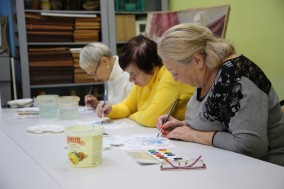 На мастер-классе посетителям тематического занятия мы предложили выполнить роспись по мотивам орнамента изразцов, ведь художники объединения «Мир искусства» творили под девизом: «Искусство ради искусства»!