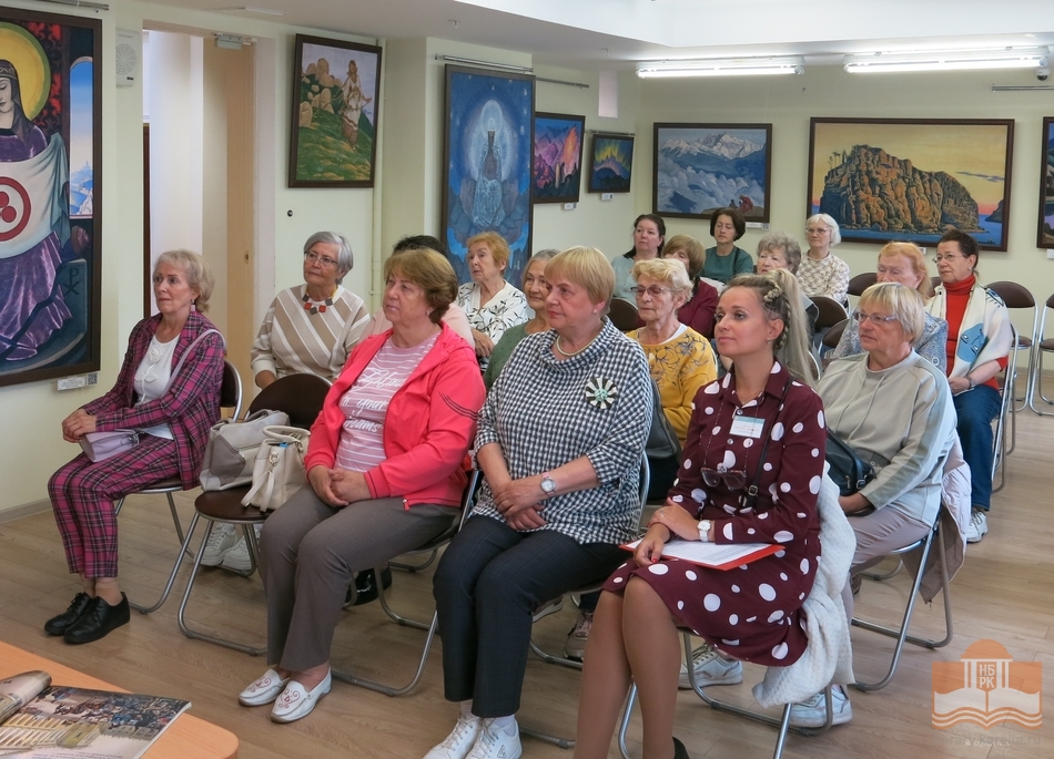 Поскольку встреча проходила в рамках акции «Ночь кино», рассказ ведущей был дополнен фильмом из медиатеки Виртуального Русского музея «Михайловский дворец». Фильм - часть авторского проекта Владимира Александровича Гусева – директора Русского музея с 1988 по 2023 годы. Также была представлена литература по теме из фонда библиотеки.