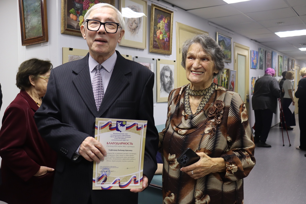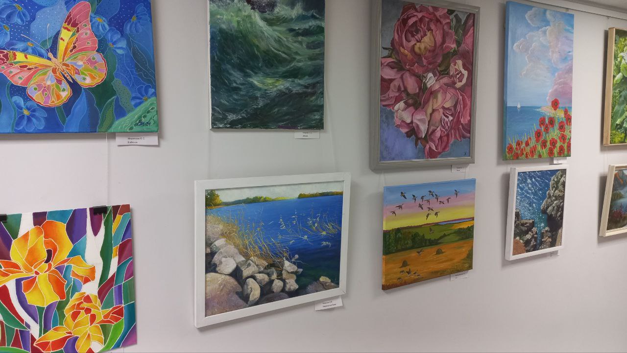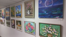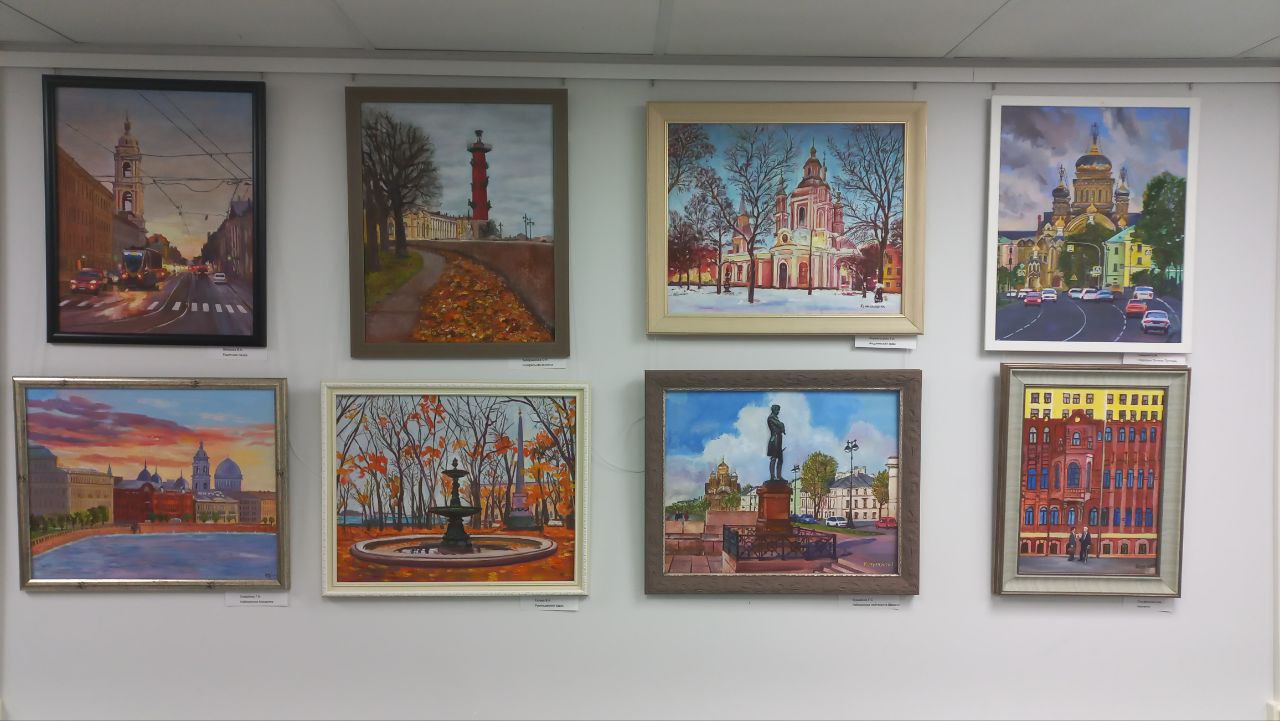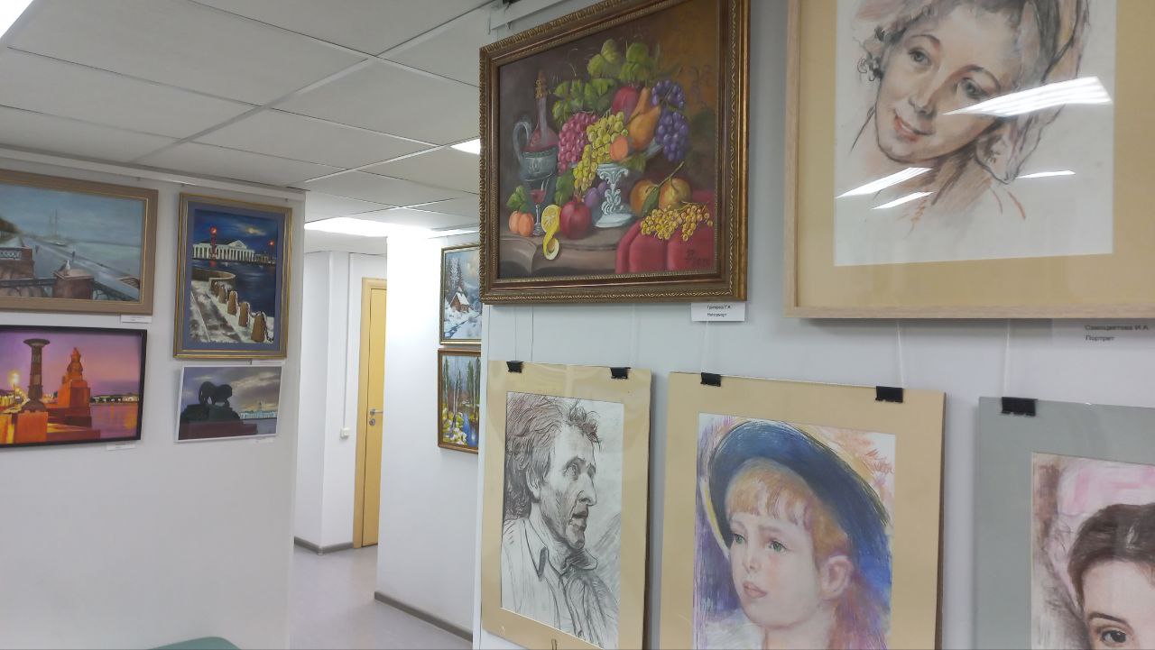Выставка «Я люблю свой округ», на которой представлены работы талантливых художников-любителей изостудии «Радуга» Социального центра Муниципального округа №7 Василеостровского района.