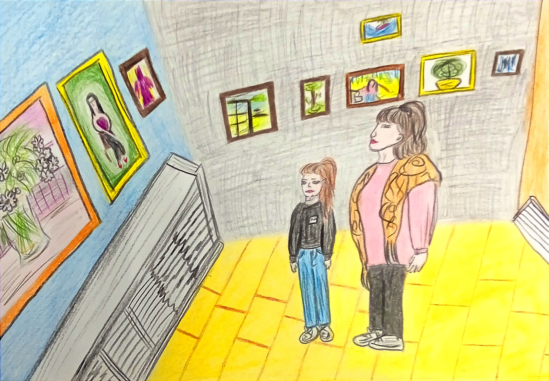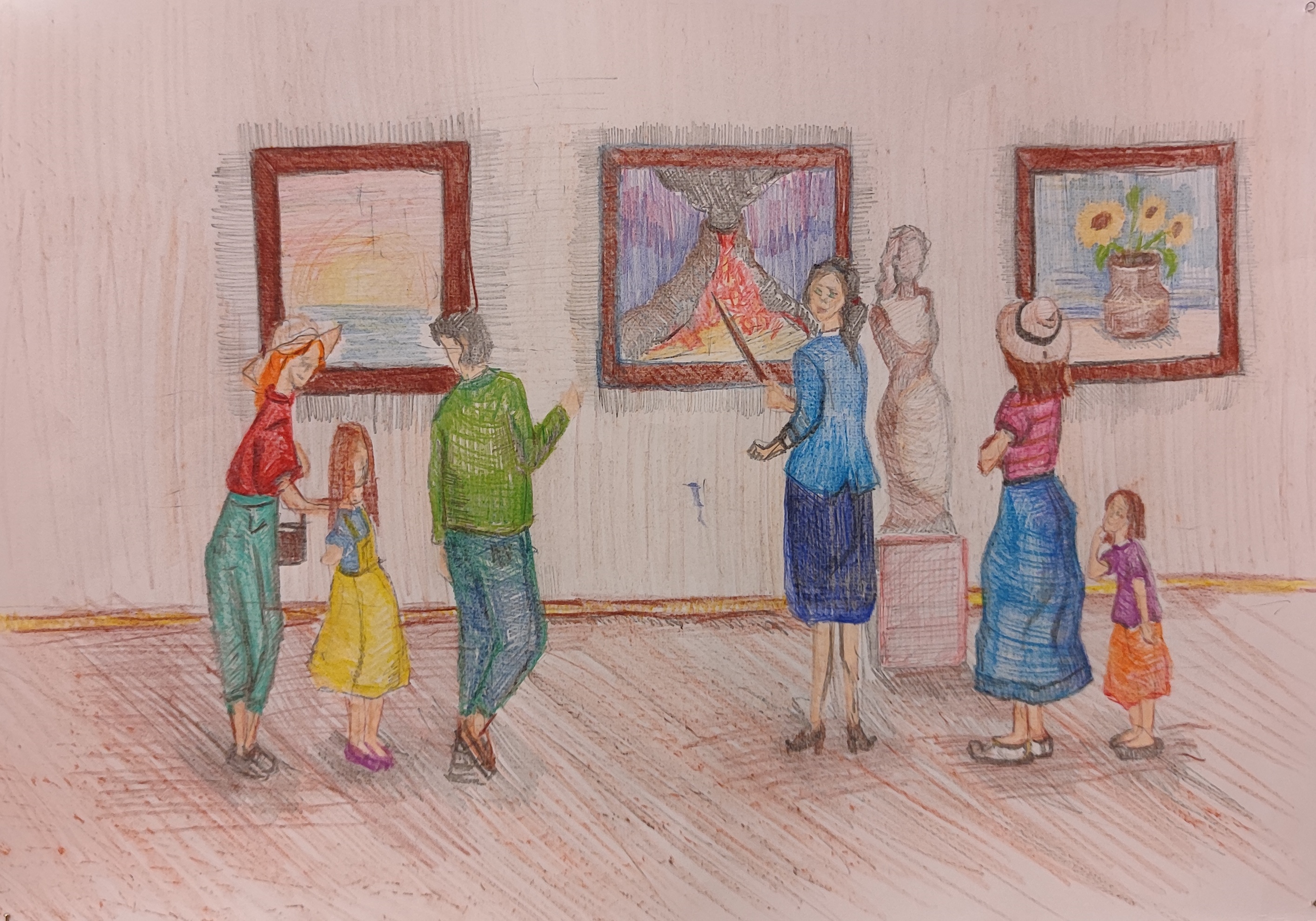 Третье место у Елизаветы П. Елизавета запечатлела на листе бумаги свои впечатления от выставки магнитогорской художницы Любови Александровой.