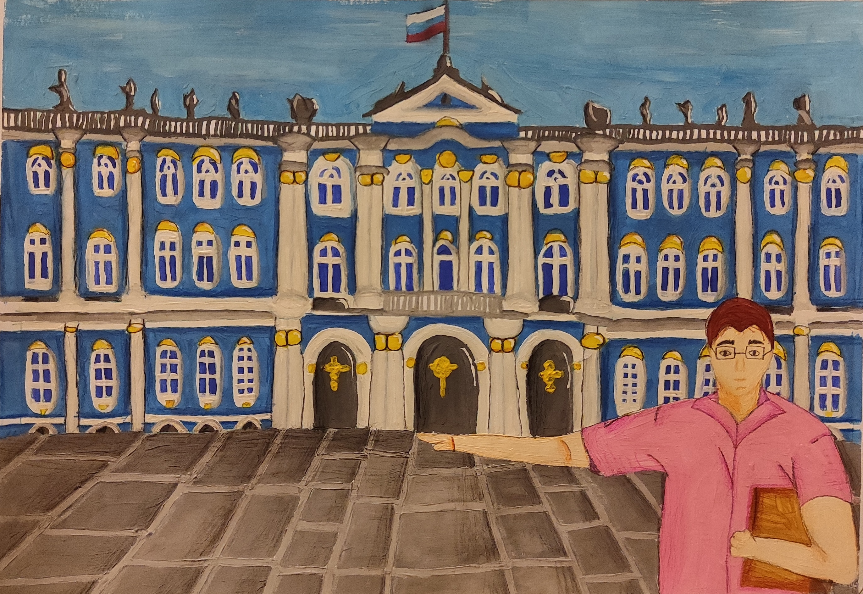 Поощрительный приз «За участие» получают Эльвира И. за впечатляющий вид шедевра русского зодчества «Манящий Эрмитаж» и Нурия И. У Нурии очень красивый карандашный рисунок «Профессия: музейный экскурсовод» со множеством персонажей.