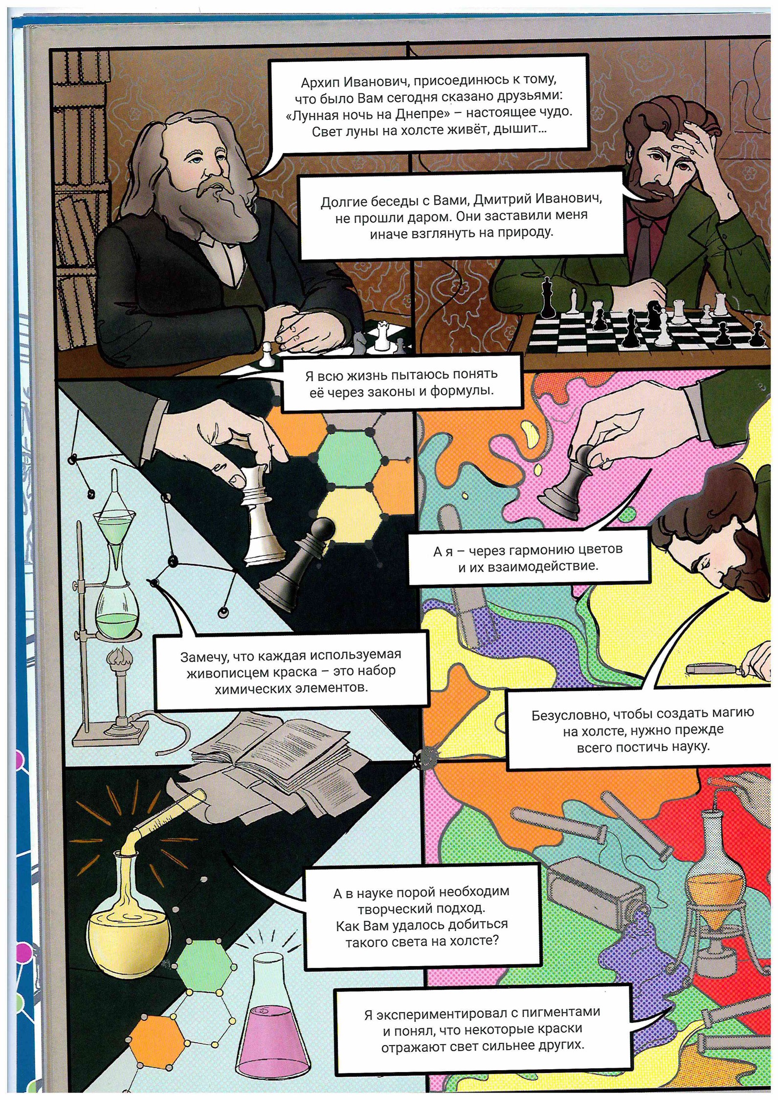 В публикации использованы две иллюстрации из книги "Куинджи и Менделеев. Комикс-новелла". ГРМ 2025