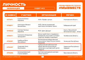 Номинация «Лидер НКО» учреждена для выявления наиболее эффективных руководителей, работающих в некоммерческом секторе. География участников - от Калининграда до Дальнего Востока, включая Донецкую и Луганскую народные республики.