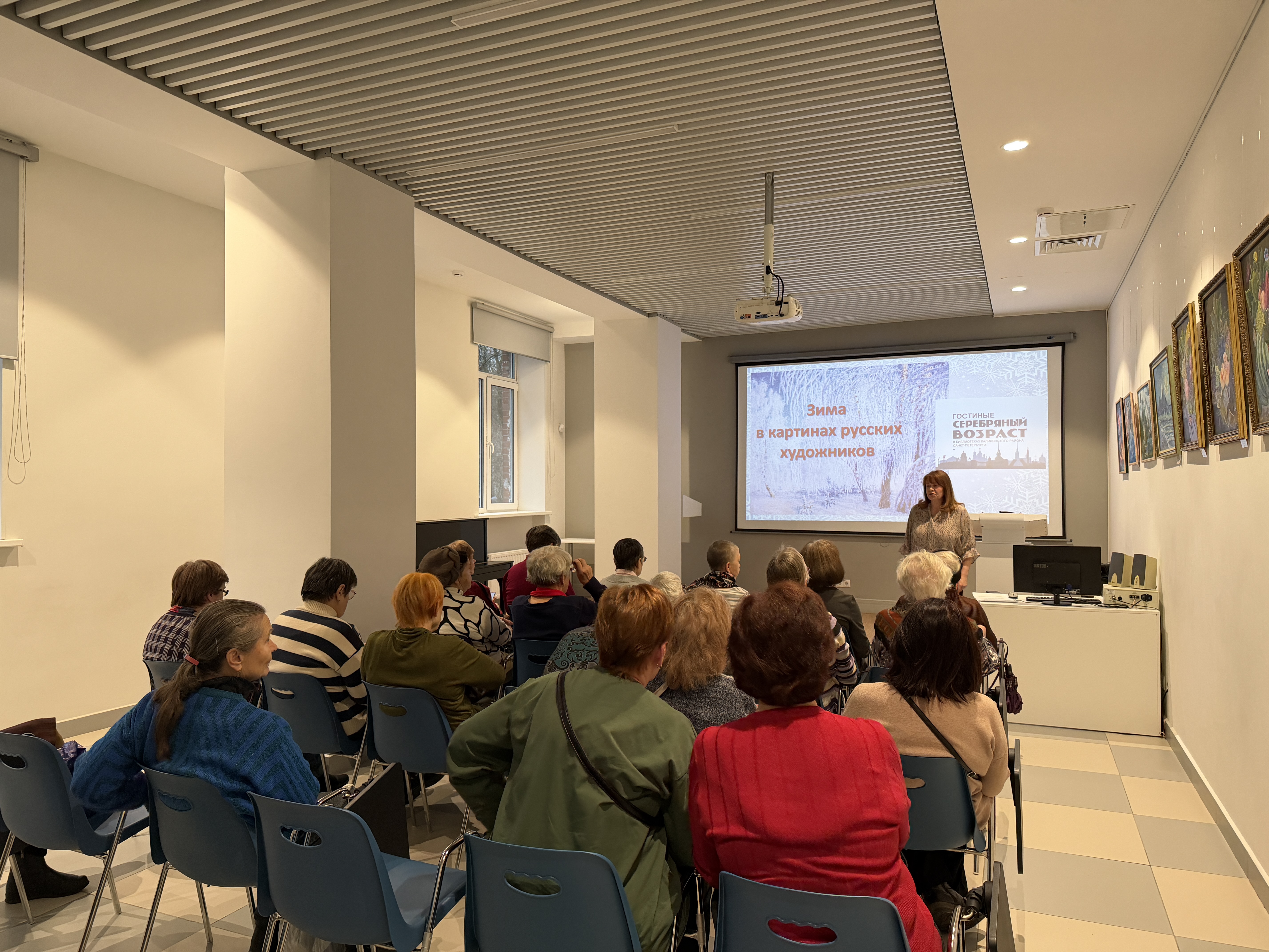 2 декабря в Центральной районной библиотеке им. В. Г. Белинского для посетителей «Гостиных «Серебряный возраст» состоялась лекция «Зима в картинах русских художников».