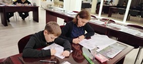 Мастер-класс начался со знакомства с творчеством И. Билибина. Его творчество хорошо узнаваемо благодаря приемам, которые он сам придумал и использовал во всех своих работах. Автор очень трепетно относился к графике, говоря, что она обращает внимание на линию, ее характер, а не на отдельные цветовые пятна.