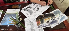 Для выполнения работ мы выбрали простой карандаш, маркер, ручку и фломастеры двух цветов – серый и чёрный. Работа с разными графическими материалами направлена на развитие воображения и образного мышления, а так же помогает преодолеть все «страхи» перед самостоятельной деятельностью участников.