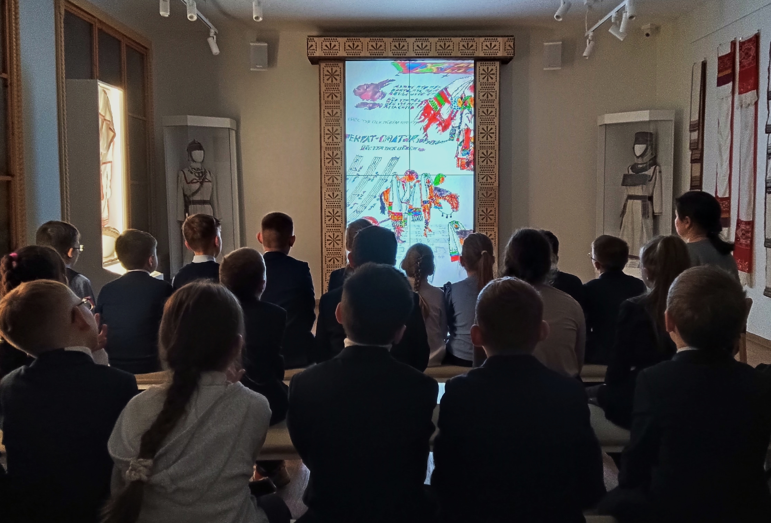В постоянном зале чувашской культуры ребята познакомились с героями родного края на мультимедийной выставке «Салтак юррисем. Рекрутские песни» и планшетной экспозиции «История Чувашии. XX век».
