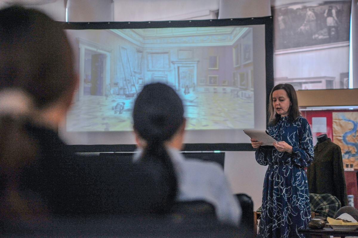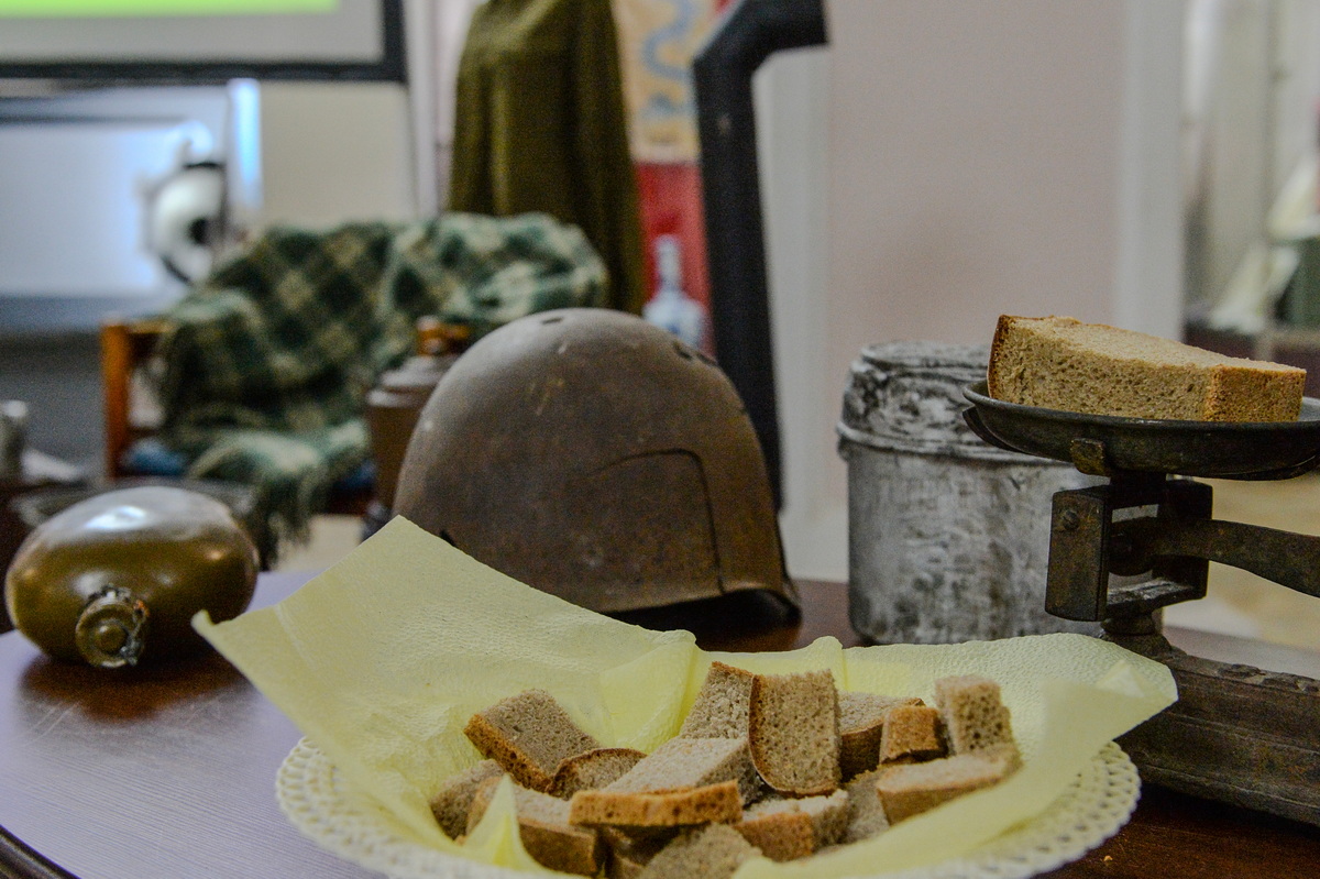 Учащиеся окунулись в атмосферу тех страшных дней, узнали как жили обычные люди, оставшиеся в городе. Что делали художники, чтобы запечатлеть картины разрушенного города, спрятанных памятников. Как спасали музейные экспонаты сотрудники крупных музеев города. Ребята увидели, как выглядят продуктовые карточки, сколько грамм хлеба получали жители. А хлеб — в то время время он был другой, низкого качества, с примесями и его берегли, собирали даже крошки.