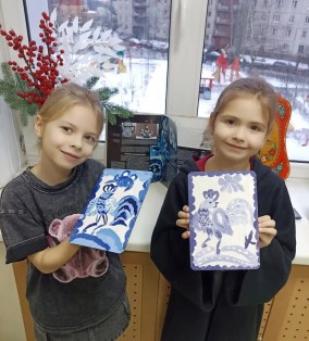 31 января в России отмечается День Гжели. Воспитанники ИЗО студии Золотой рыбки познакомились с этим народным промыслом и расписали досочки традиционным сине-белым сюжетом с птичкой . Получились очень интересные работы.