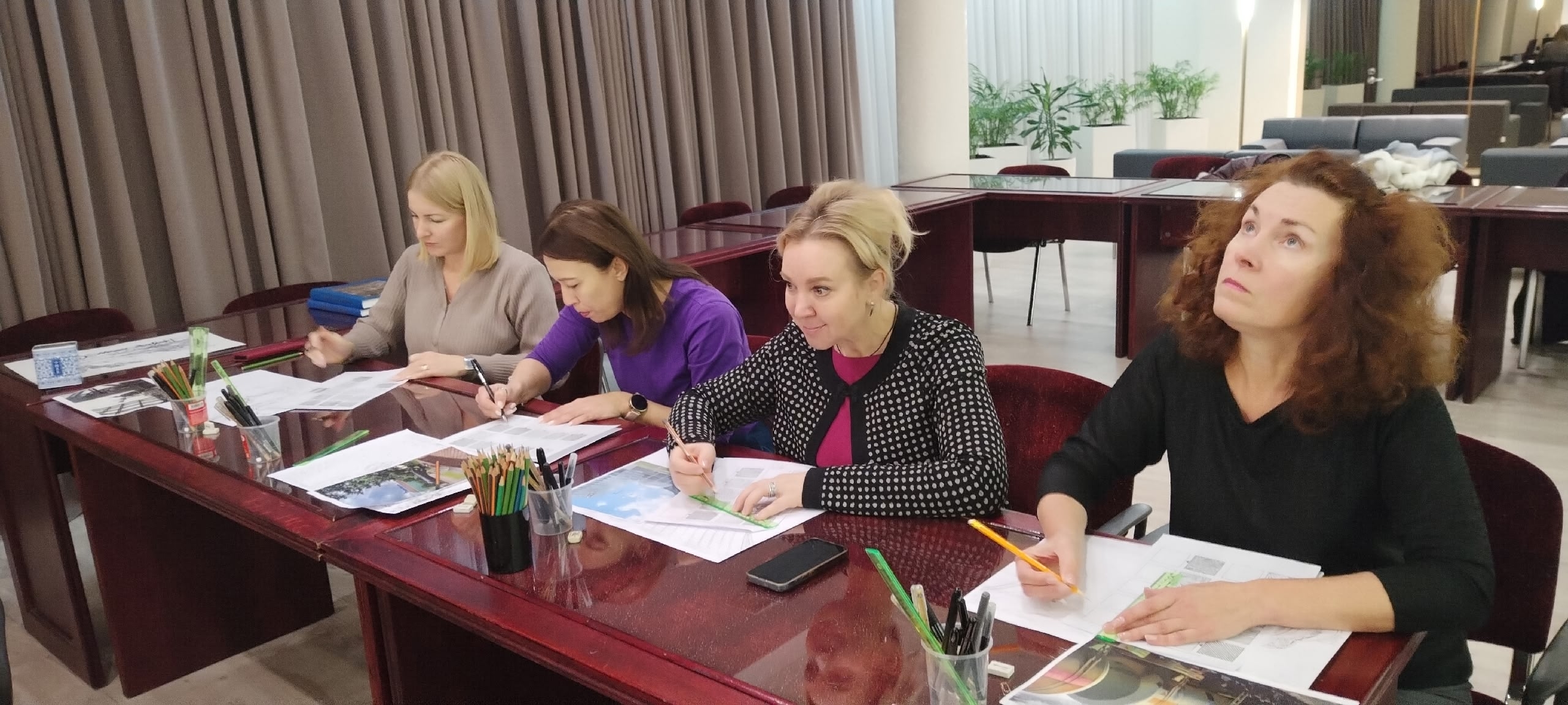 Для них это стало новинкой. Как линия, пятно и точка может создать картину. После рабочего дня такое занятие - это отдых, игра, способ самовыражения, положительные эмоции от приятного общения и конечного результата. Всем участникам помогало терпение и вдохновение в создании работ.
