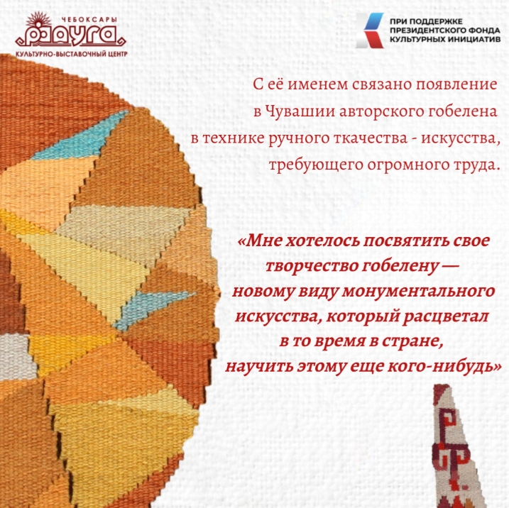 С её именем связано появление в Чувашской Республике авторского гобелена ручной работы.