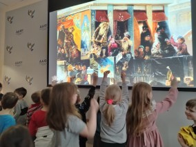 Учащиеся Школы детского творчества "Занимайка" знакомились с жанровыми картинами русских художников Б. Кустодиева, В. Сурикова, К. Маковского, рассматривали большие многофигурные композиции, замечали детали и удивлялись мастерству художников, а также играли в игру "Что исчезло на картине?".