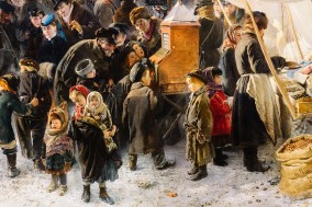 Константин Маковский на полотне «Народное гулянье во время масленицы на Адмиралтейской площади в Петербурге», с монументальным размахом запечатлел многоликую толпу, представив в этом масленичном гулянье образ «всего Петербурга». На картине есть взрослые и дети, и помимо веселых балаганов, каруселей и чаепития с самоваром, учащихся ШДТ «Занимайка» заинтересовал старинный аппарат с движущимися картинками «раёк», вокруг которого столпилась детвора.