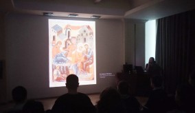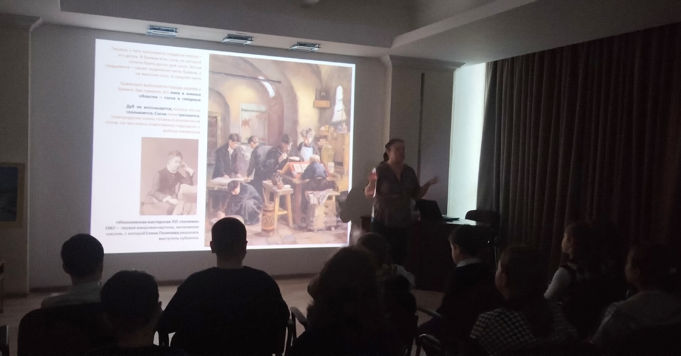 Посмотрели создание иконы. Дети были увлечены процессом. Особенно неожиданным материалом оказалось сусальное золото – тончайшее и хрупкое, и куриный желток, на котором мастер замешивал специальные краски.