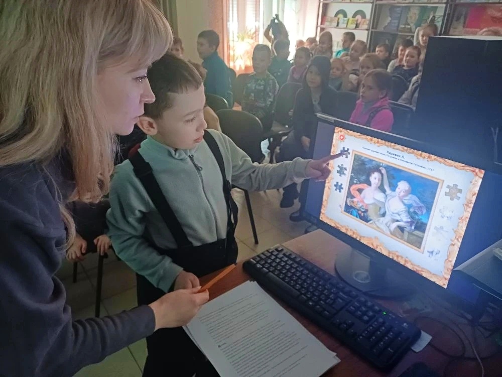 Дошкольники детского сада № 112 в отделе искусств Центральной городской библиотеки 11 февраля познакомились с творчеством Ивана Айвазовского. Влюбленный в водную стихию живописец создал огромное количество полотен с изображением моря, кораблей, разноцветных волн. Прослушав «Сказку о волне и ее художнике», дети продолжили занятие знакомством с игровыми программами из медиатеки проекта «Русский музей: виртуальный филиал». Ребята активно составляли картины из пазлов, находили лишние элементы. Благодаря ресурсам проекта погружение в мир творчества великих художников становится более интересным, результативным и содержательно насыщенным.