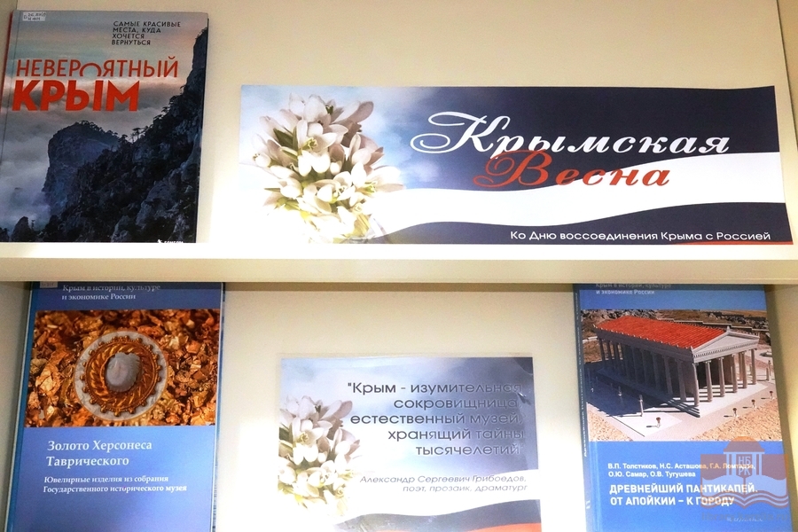 В Национальной библиотеке Карелии открылась книжная выставка «Крымская весна», приуроченная к 12-й годовщине воссоединения Крыма с Россией. У народов Крыма и России общая историческая судьба. Крым – это то место на карте нашей страны, где по-настоящему раскрылись таланты её творцов. Незабываемые виды и дух полуострова вдохновили поэтов и писателей на создание бессмертных шедевров.